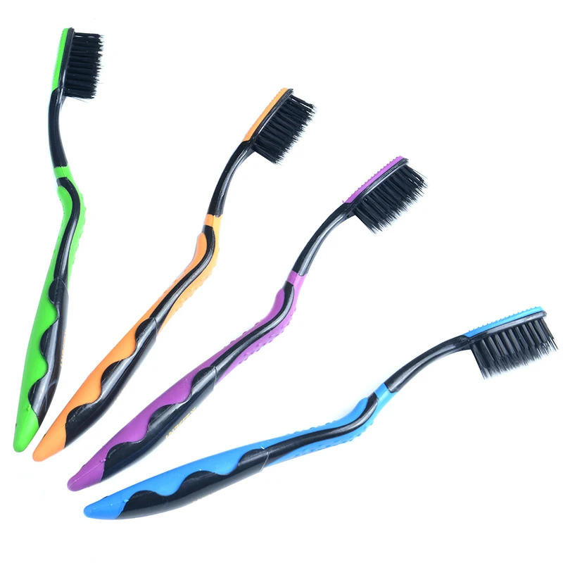 AZDENT Hot 4PCS Double Ultra Soft Toothbrush Bamboo Charcoal Nano Brush Oral Care 625 Nano-antibacterial Toothbrush Black Heads
