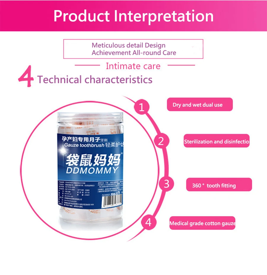 Disposable Soft Maternal Baby Cotton Gauze Toothbrushes Vacuumize Packaged Infant Cotton Gauze Oral Cleaning Travel Tooth Brush