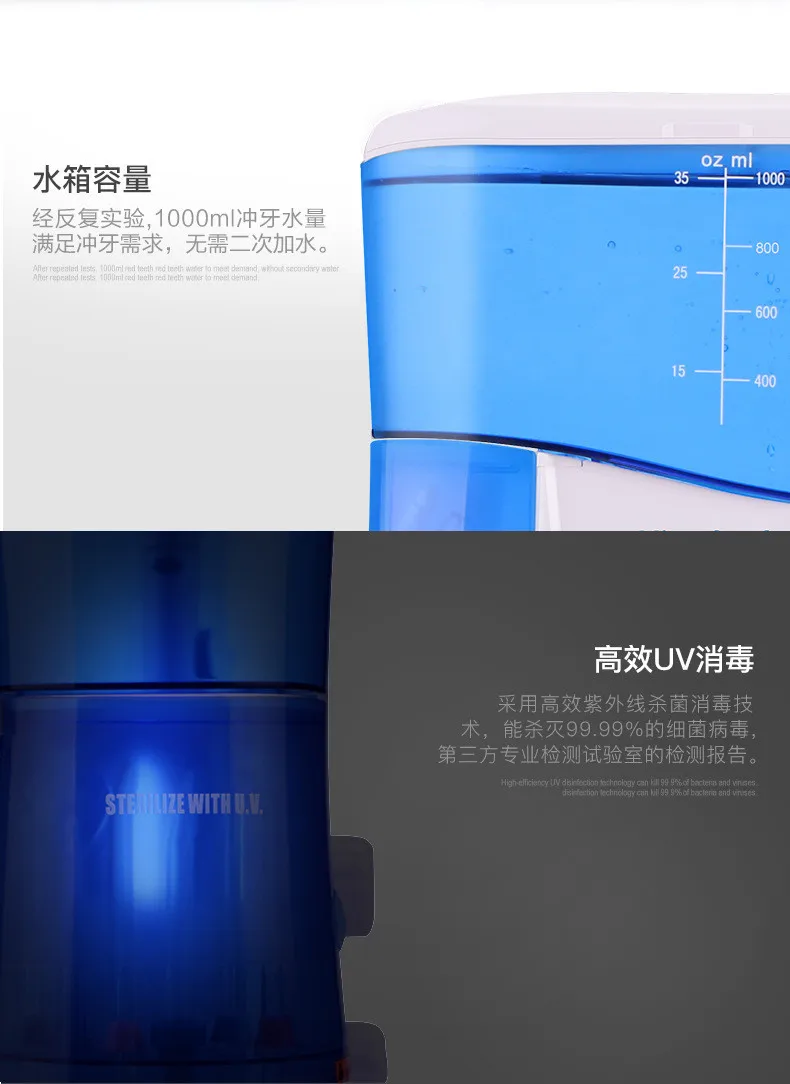 New Develop 1000ML Water Flosser Dental Oral Irrigator Dental Spa Unit Professional Floss Oral Irrigator 7Pcs Set Tip Water Tank