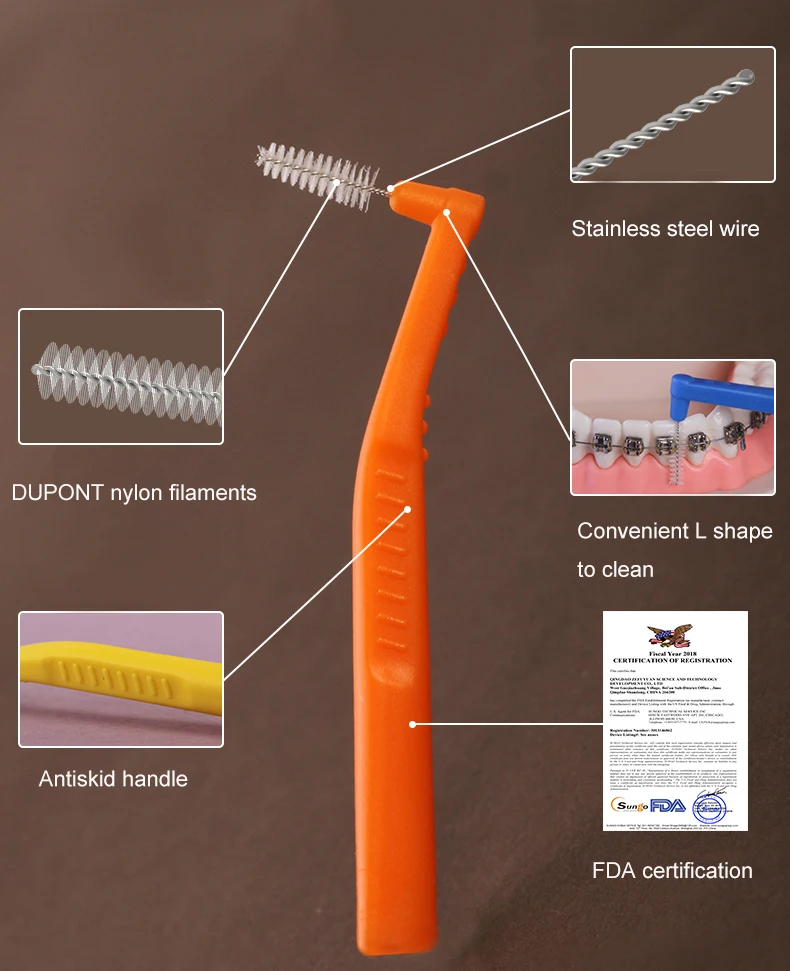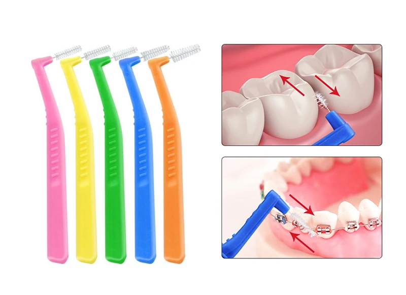 L Shaped Interdental Brush, 0.6mm-1.2mm Dental Floss Cleaners Orthodontic Wire Brush Toothbrush Oral toothpick 20 pieces only $3.96