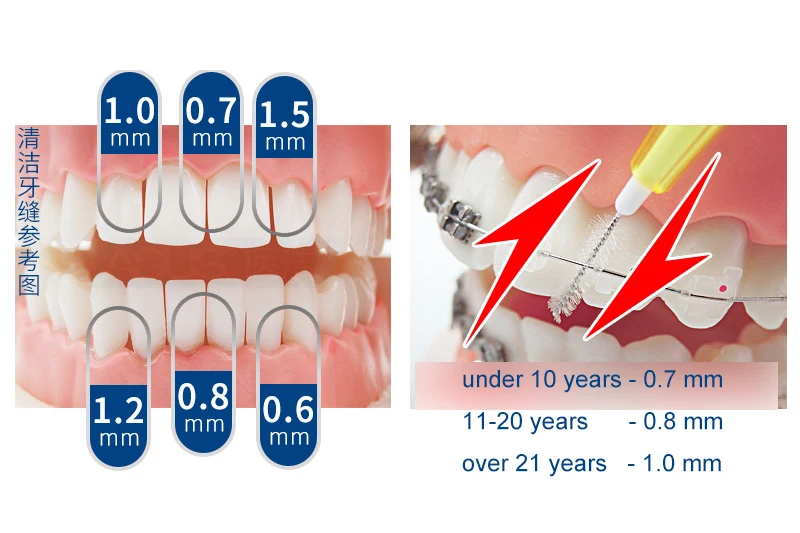 L Shaped Interdental Brush, 0.6mm-1.2mm Dental Floss Cleaners Orthodontic Wire Brush Toothbrush Oral toothpick 20 pieces