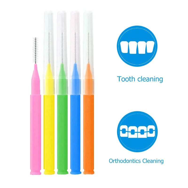 0.6-1.5mm Interdental Brushes, 60pcs/box Tooth Push-Pull Escova Removes Food And Plaque Better Teeth Oral Hygiene Tool